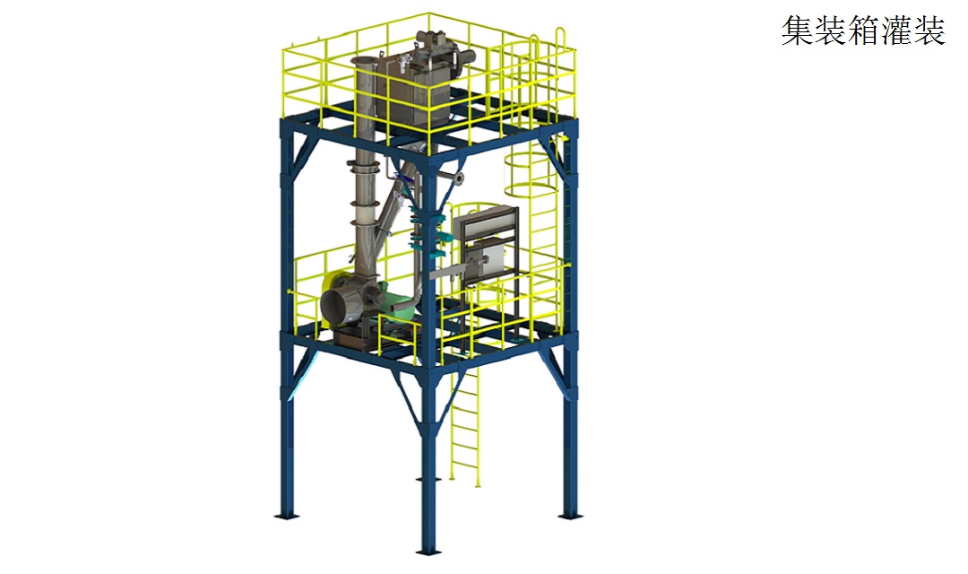 ? 集裝箱及槽車灌裝系統(tǒng)可實現(xiàn)物料的自動灌裝、除塵、清理及稱重等功能。